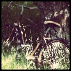 I pull forward on the bike so that it is upright. Yanking up, the bike doesn’t budge. Yanking. Yanking. Yanking. Nothing. The grasses have grown around the tires, like chains to the earth, keeping the bike firm in its own grave. Keeping it rooted in the past. Yanking. Still nothing.